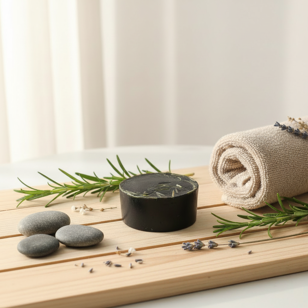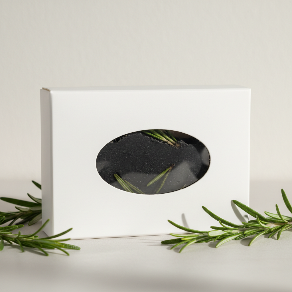 Ingredientes: Glicerina, carbón activado, esencia de romero, hojas de romero.